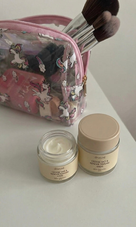 Çedene(menengiç) ve kenevir yağı birleşimi sayesinde cilt zamanla daha canlı, parlak ve sıkı bir görünüme kavuşur.